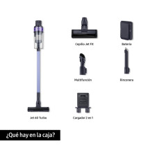 Jet 60 TURBO , potencia de succión máx 150W, 86db, fitracion 99,99%, multiciclon, digital inverter, tiempo de carga 3,5hrs, bateria extraible y estación de carga 2 en 1.