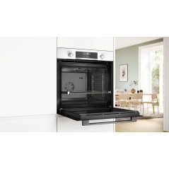 HBG536EW4, Horno, Multifunción, A+, Integrable, 60cm., 71 l., 8 F., Asistente de limpieza con agua, Ap. Abatible, Cristal blanco, AirFry, Mandos ocultables con display, Gourmet 10 recetas, Railes 1 nivel, Temperatura en Display, SoftMove